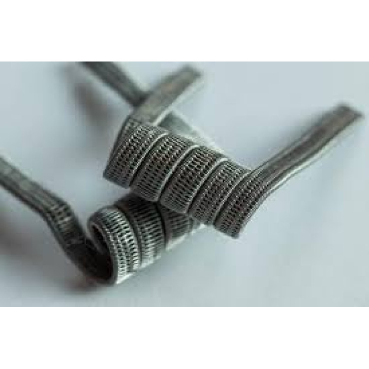 Один из самых сложных в изготовлении клэптонов. Существуют Double Staggered Clapton(с двумя заготовками внутри) и Triple Staggered Clapton(с тремя заготовками). Занимает довольно много места при установке, используется в основном в дрипках. Некоторыми считается одним из самых вкусных койлов. Процесс изготовления койла похож на тот, что использовался для Fused Clapton с некоторорыми отличиями. Изготавливаем две или три Clapton Parallel. Далее с наших заготовок аккуратно снимаем одну из навитых проволок. Далее на закрепленные параллельно заготовки навиваем проволоку таким образом, чтобы она попадала в "пазы" наших заготовок